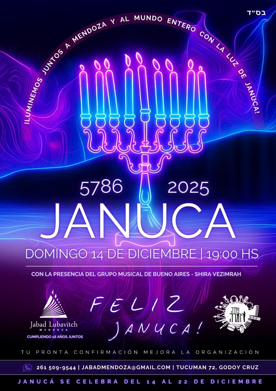 12 de diciembre de 202522 de Kislev 5786Encendido Velas: 20:20Finaliza: 21:2213 de diciembre de 202523 de Kislev 5786